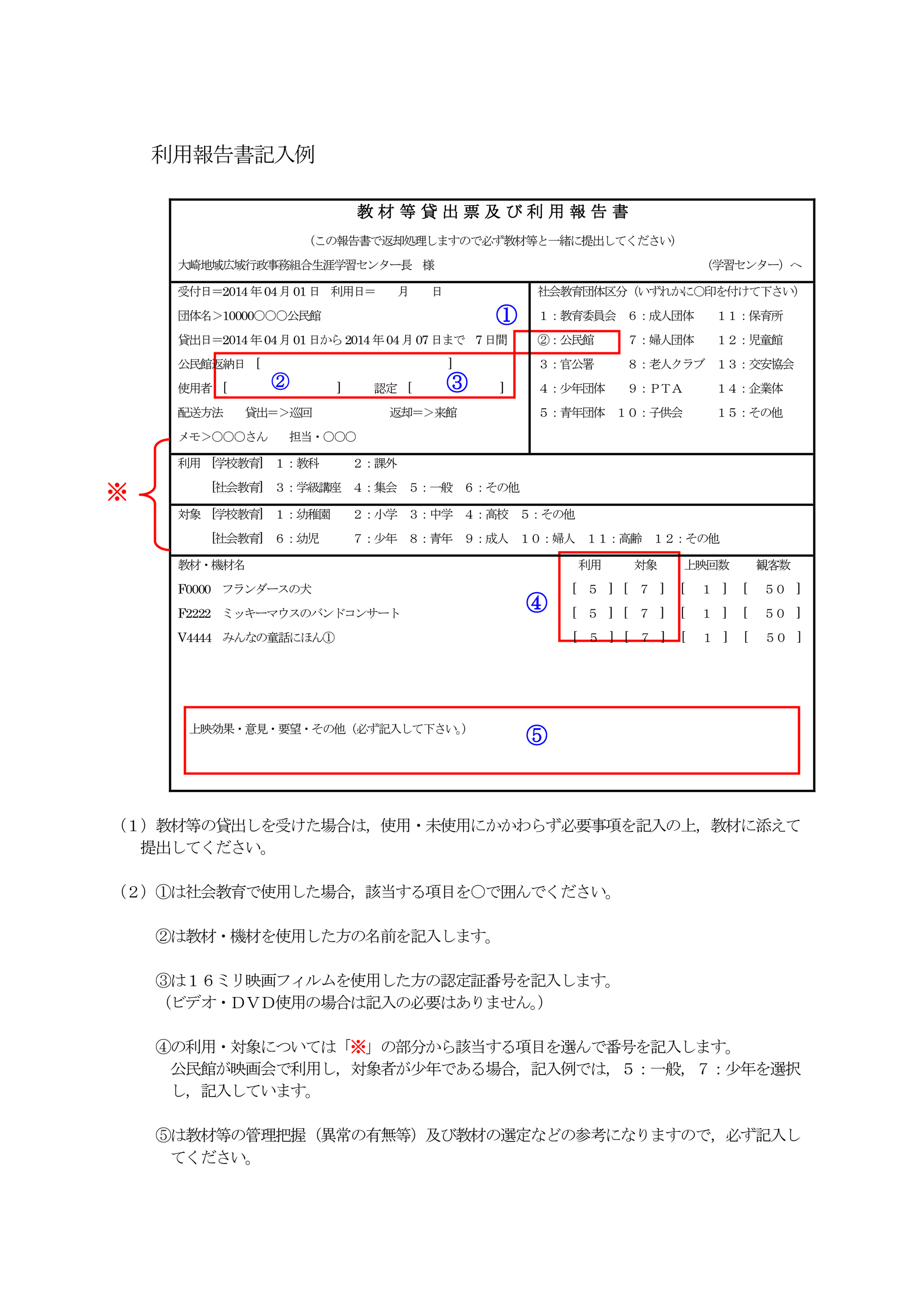 - 教材・機材と一緒に利用報告書をお渡しします。使用、未使用にかかわらず、必要事項を記入の上、教材・機材に添えて提出してください。
