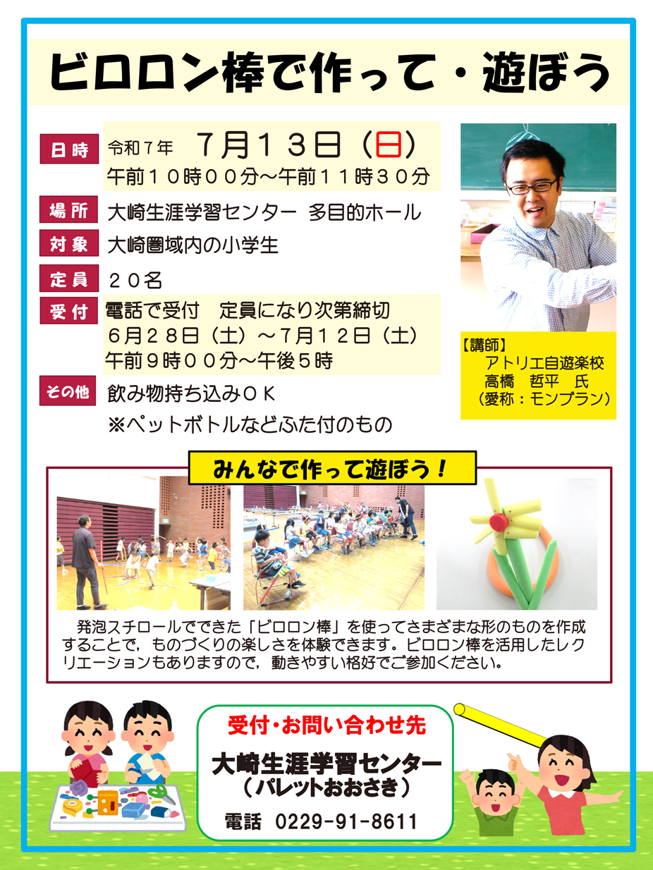 | 定員 | 大崎圏域内の小学生 20名 |
